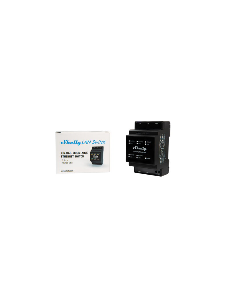 Shelly LAN Switch is 'n DIN-monteerbare Ethernet-skakelaar met 5 RJ45-poorte. Dit bied 'n naatlose oplossing om jou netwerkvermoëns uit te brei sonder die moeite van uitgebreide herbedrading. Geniet vinnige 10/100 Mbps-spoed en intuïtiewe LED-aanwysers vir maklike monitering.