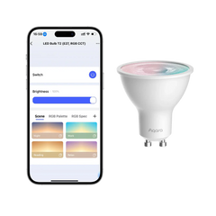 The Aqara LED Bulb T2 RGB CCT GU10 is a versatile smart spotlight bulb that offers 16 million colors, tunable white light (2000K-9000K), and dual connectivity via Thread and Zigbee protocols.