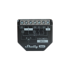 A 2-channel smart switch for control of curtains, blinds, and shutters. Features power metering and multiprotocol support (Wi-Fi, Zigbee, Matter, Bluetooth).