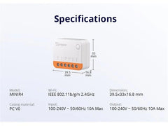 The SONOFF MINIR4M is a Matter-certified Wi-Fi smart switch that allows you to automate lights and appliances and control them via a single app across multiple platforms like Alexa, Apple Home, and Google Home.